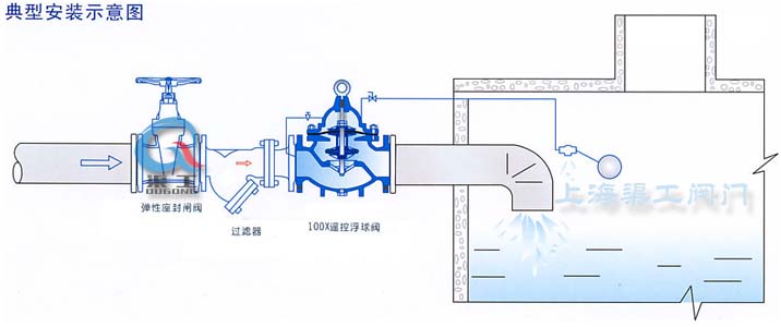 100X遙控浮球閥由主閥、針閥、球閥、浮球閥、微型過濾器等組成水力控制接管系統,調定后,自動控制液面高度。100X遙控浮球閥直接利用液面控制,不需要其它裝置和能源,保養簡便,液面控制準確度高,不受水壓影響,密封良好。100X遙控浮球閥主要用于高層建筑、生活區等供水管網系統的水塔、水池等設施的液面控制。